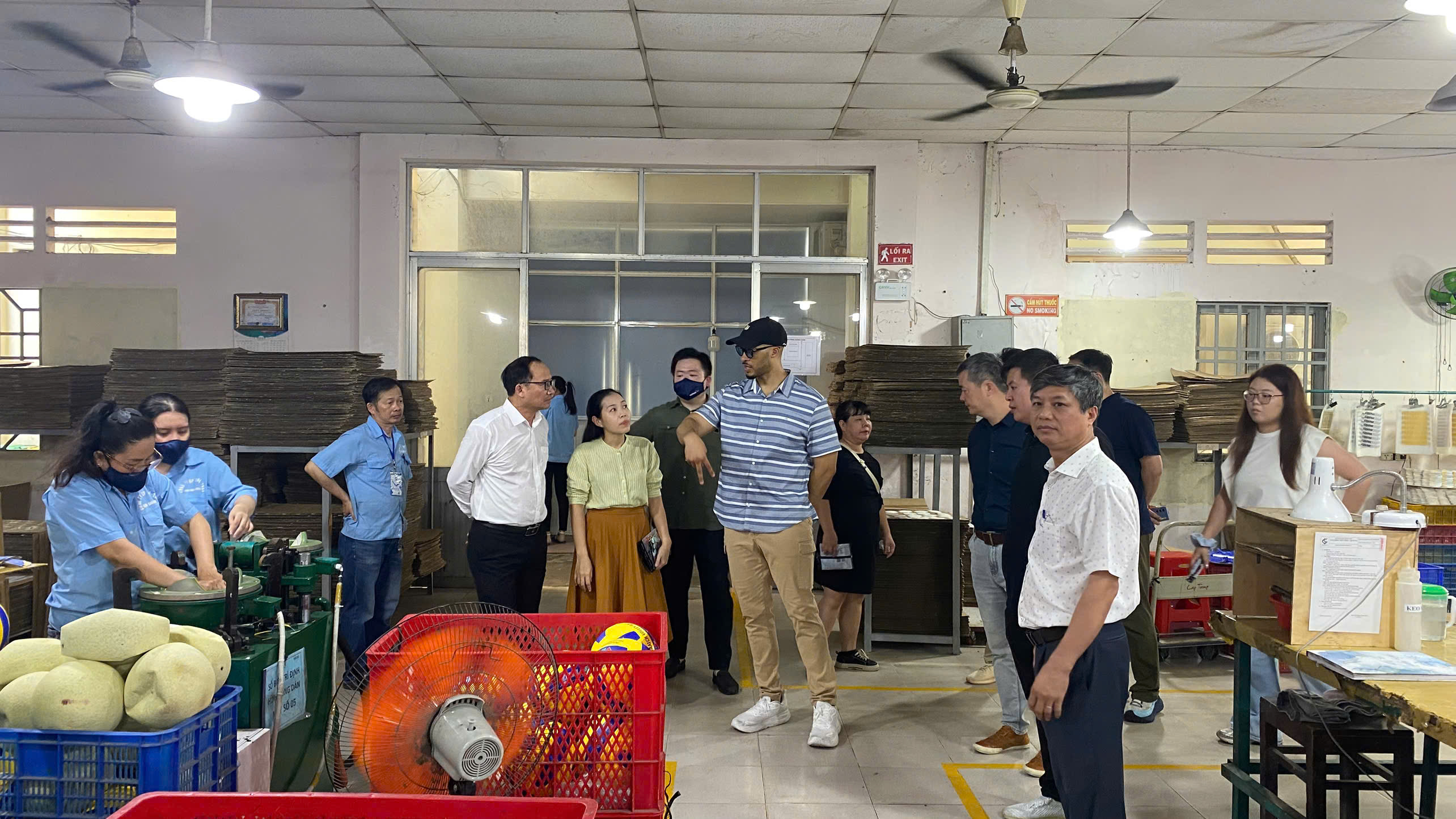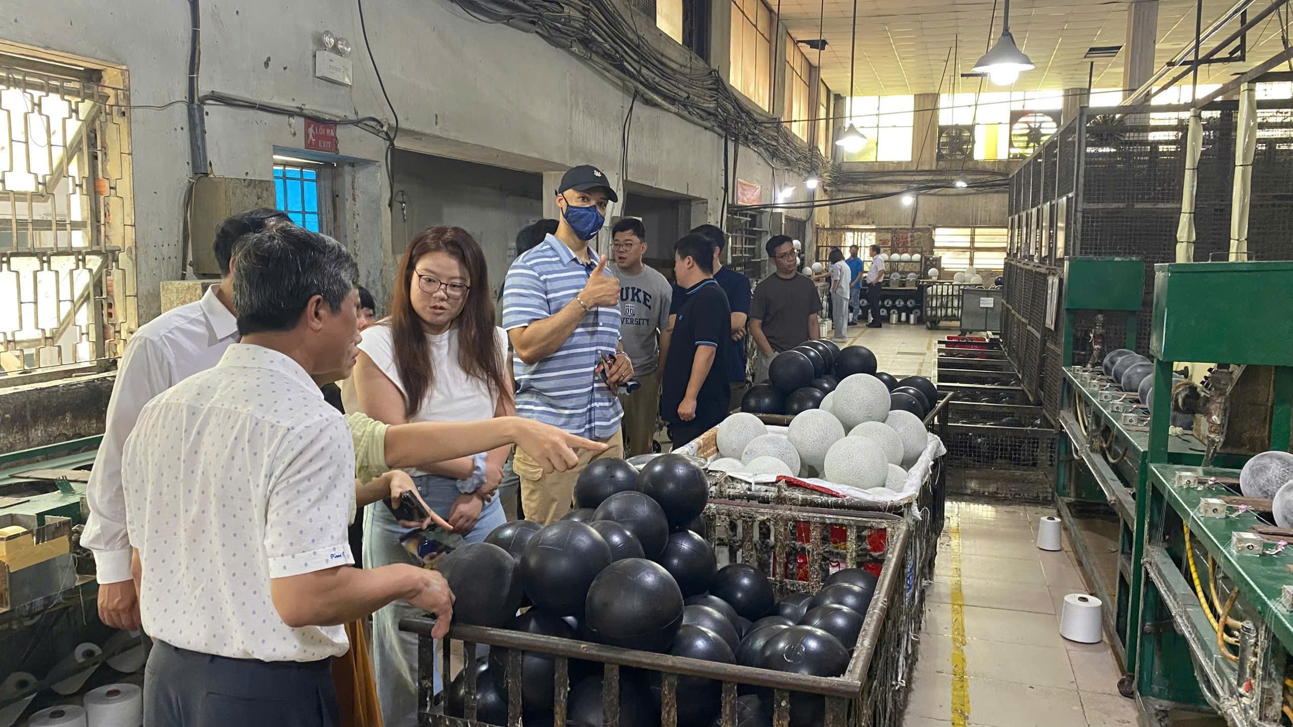 Các thành viên trong đoàn đặc biệt quan tâm đến công nghệ sản xuất hiện đại và quy trình kiểm soát chất lượng (QC) nghiêm ngặt mà Geru Sport đang áp dụng. Họ đã tìm hiểu chi tiết về từng loại vật liệu như cao su, PU, và cách mà các vật liệu này được xử lý để tạo ra những quả bóng có độ bền cao, độ nảy chuẩn xác, phù hợp với tiêu chuẩn thị trường Mỹ. Sự tỉ mỉ trong từng đường keo, đường chỉ và việc tuân thủ các quy chuẩn an toàn lao động đã gây ấn tượng mạnh mẽ với đoàn công tác.